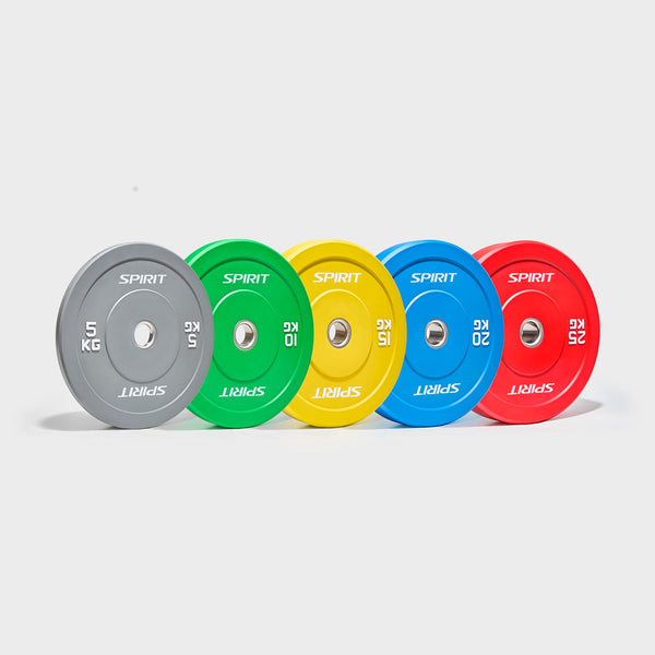- Colour coded plates: 5kg (grey), 10kg (green) 15kg (yellow), 20kg (blue), 25kg (red)