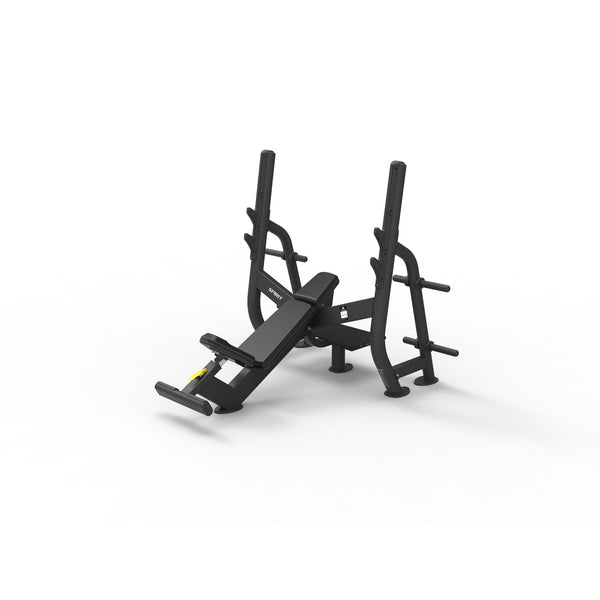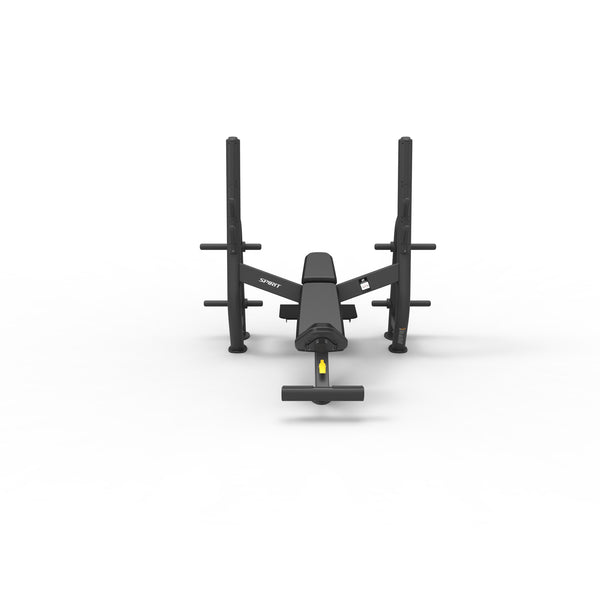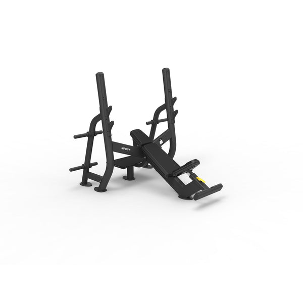 Build balanced, muscular physique and increase your strength with the Spirit Olympic incline weight bench. This robust 1-piece bench with a heavy-duty construction is a solid and stable base for your workouts and enables you to target your core, torso, arms, abs, and shoulders. For challenge and variety, there are multiple weight take-off points and an adjustable seat, whilst an integrated spotter platform with a non-slip coating ensures extra safety while exercising. A great choice for gaining muscle mass, the bench features a strong and durable foot bar for added support during heavy lifts. For optimum comfort during weightlifting sessions, it boasts a padded seat and backrest. To guarantee proper organisation and easy access to your Olympic weight plates, there are 8 storage pegs.