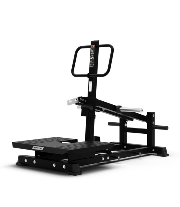Featuring a large platform with anti-slip footplates, a stainless steel hook with 2 positions for attaching a belt, and oversized handles for support and stability, this machine ensures secure and comfortable positioning throughout the lift. Dual band pegs provide the option for variable resistance, perfect for explosive power training, or progressive overload.