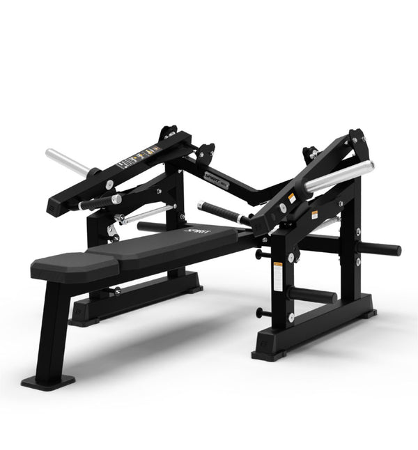 Unlike any other, the Spirit Flat Chest Press is designed with spring assisted adjustable arms with 4 positions to offer precise setup and range of motion control for every user. Independent arms promote balanced strength development and allow each side of the body to work on its own for a natural, free-weight style pressing motion. Integrated band pegs are also available to provide dynamic resistance options.