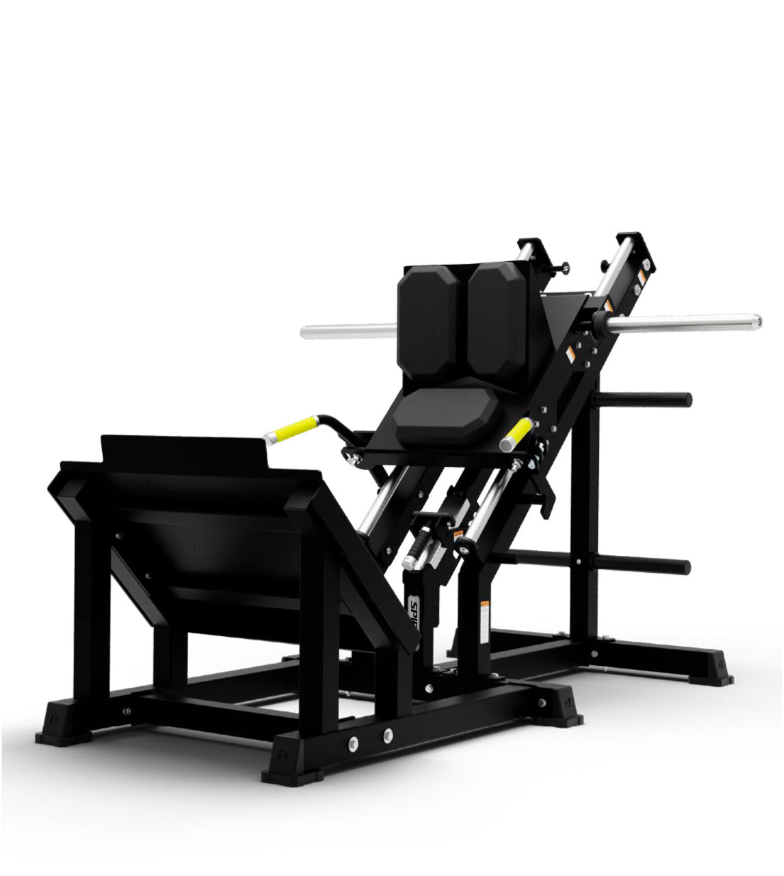 The Spirit Lumbar Squat features ergonomic pads that cradle the lower back and set up the user to significantly reduce spinal load, allowing users to train safely with improved form. Anti-slip footplates and premium 40mm linear bearings provide total