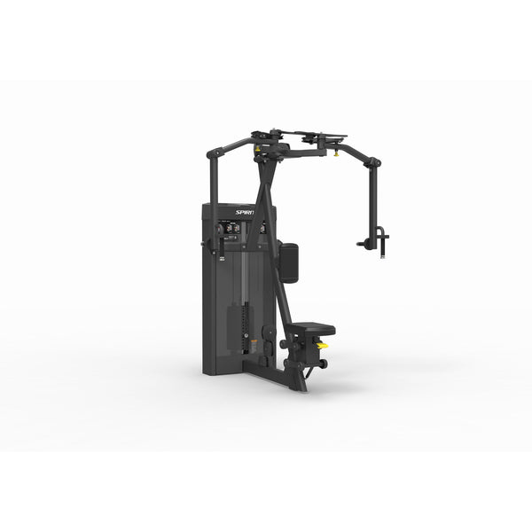 - Dual exercise machine efficiently focuses on Pectoralis and Posterior Deltoids