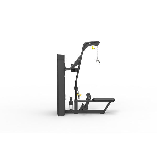 - Traditional Lat Pulldown with adjustable bar height and storage hooks