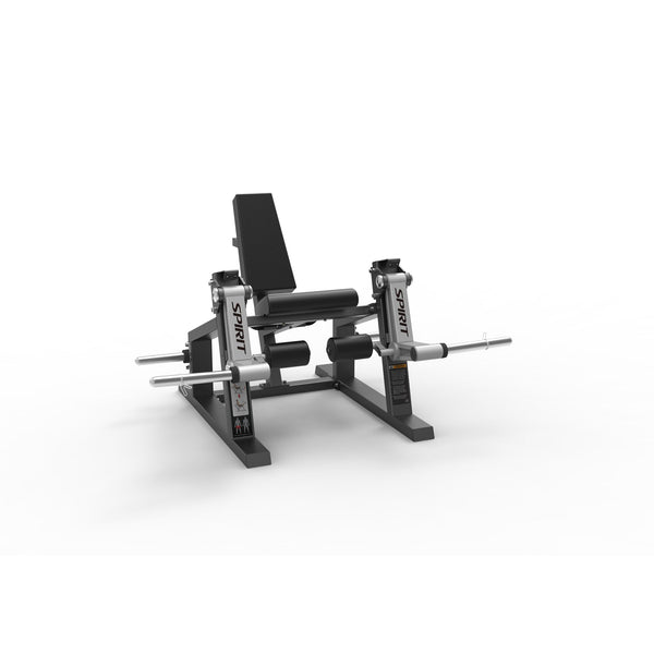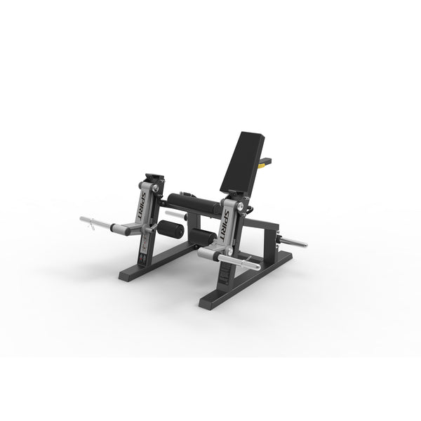 The unilateral and bilateral motions for this leg extension unit help correct user muscle imbalances. Its angled user positioning helps with stabilisation during exercise. The back pad adjustments allow users to have proper alignment with the machine's axis of rotation. The lower tibia pad self-adjusts limiting the number of necessary adjustments users have to think about.