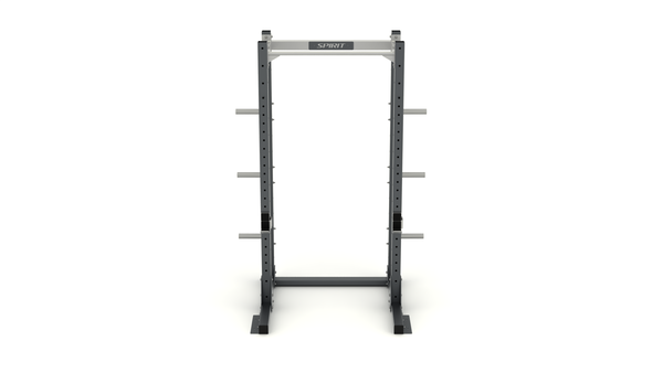 Spirit Half Rack, includes J-Hooks, 3 pairs of stainless weight horns, small branding plate, and straight single pull up bar.